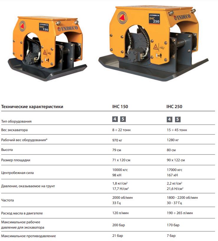 Поворотные или фиксированные гидравлические вибротрамбовки Indeco серии IHC гарантируют повышенную эффективность и гибкость в эксплуатации по сравнению с другими продуктами на рынке. Вибротрамбовки укомплектованы стандартными соединительными опорами, которыми оснащается все прочее гидравлическое навесное оборудование Indeco, что обеспечивает его быструю и легкую взаимозаменяемость при проведении разных строительных работ на площадке.